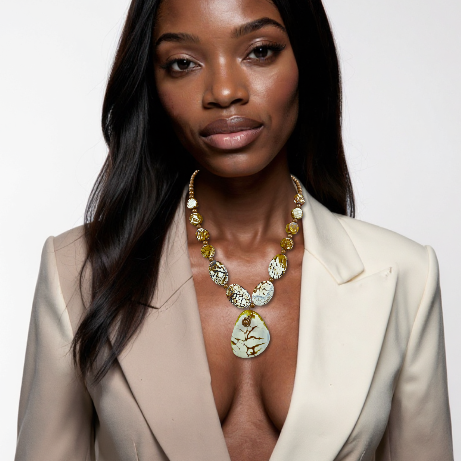 Embrace bold elegance with the Chocolate Crack Agate Necklace, featuring a stunning Chocolate Crack gemstone that captivates with its rich, earthy hues and intricate veining. Each stone boasts natural patterns that tell a unique story, enhanced by copper accents that add warmth and edge to this beautiful piece. Perfect for those who dare to stand out, this necklace combines raw beauty with refined craftsmanship. The chocolate agate measures approximately 24 inches, making it a powerful statement wearer can showcase confidently.